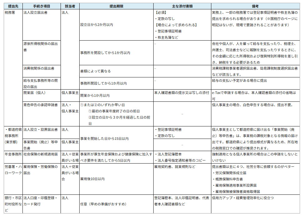 会社設立後に必要な届出と手続きチェックリスト|個人・法人別の提出先と期限を解説